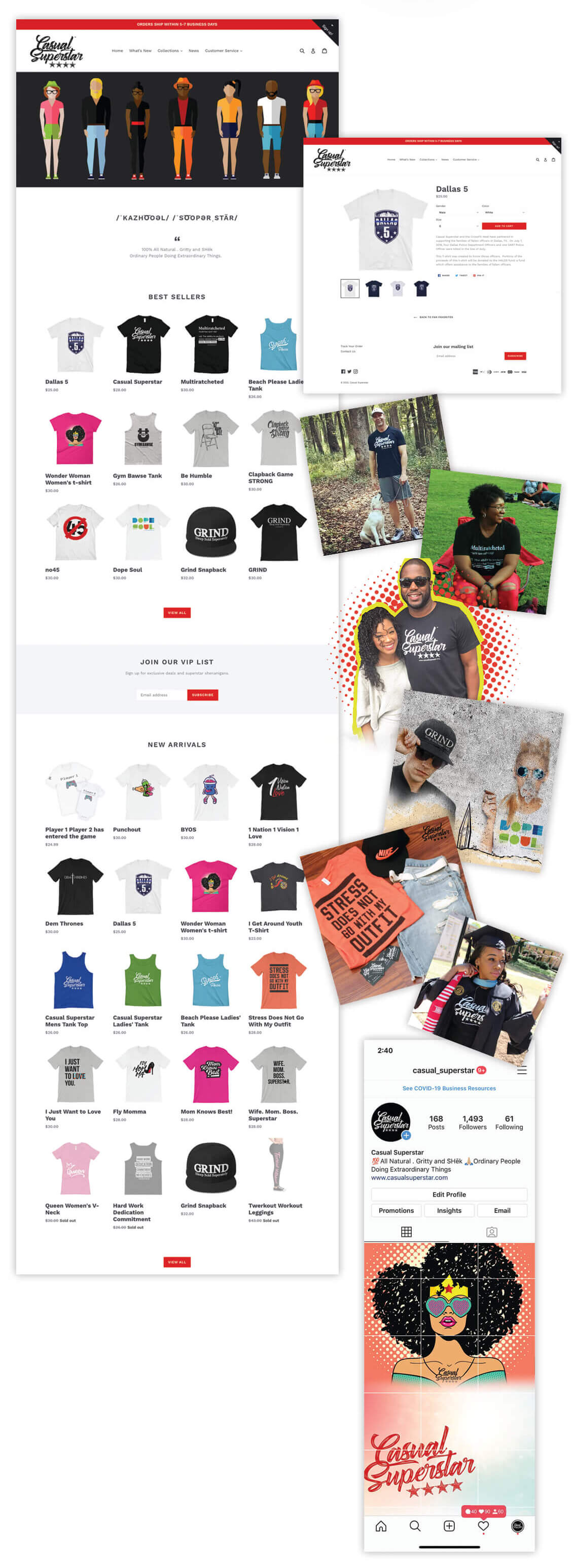 Casual Superstar is all about inspiring greatness, celebrating culture, and saluting the everyday individual through artful expression. The goal for this e-commerce project was aimed to create a modern brand to sell t-shirts and accessories that resonates with clients through website and digital marketing  channels.